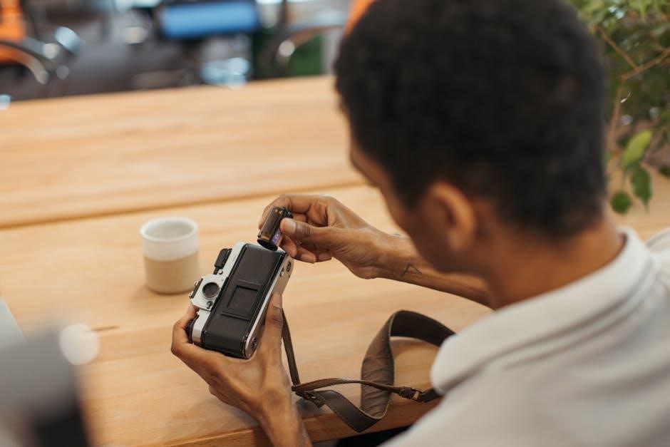 To ensure your Moultrie game camera operates correctly, follow these steps for inserting memory cards and batteries․ First, locate the memory card slot and battery compartment, typically found on the bottom or rear of the camera․ Open the compartment and insert a compatible memory card, ensuring it clicks securely into place․ Next, install the recommended batteries, making sure they are properly aligned and seated․ Close the compartment tightly to avoid any exposure to moisture․ Finally, power on the camera and verify that the memory card and batteries are recognized․ Always use high-capacity batteries and format the memory card before first use for optimal performance․ Proper installation ensures reliable operation and image capture․